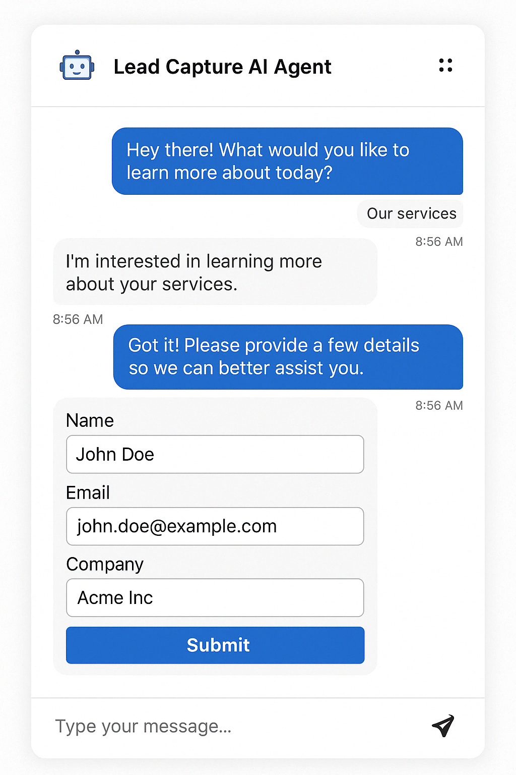 Let’s say hundreds of potential leads visit your website every day. If you’re not engaging them instantly, you're likely losing high-intent prospects and revenue. Lead capture AI agents solve this for you.